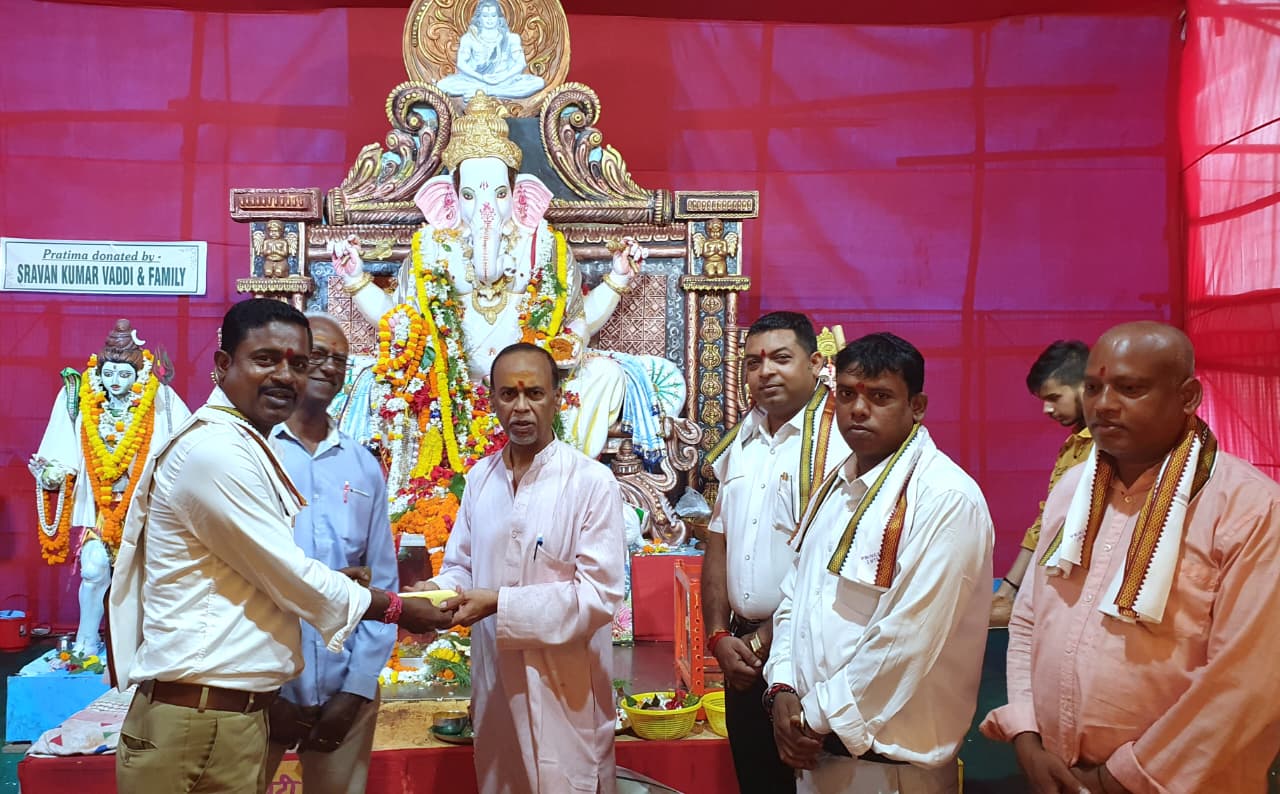 पहुंचते ही कमिटी के वरीय सदस्यों में, अध्यक्ष वाई. के. शर्मा, महासचिव पी. कृषा राव, संयुक्त सचिव एस कार्तिक राव, वरीय सलाहकार बी. आनन्द राव, सदस्यों में बी. शेशा गिरी, दुर्योधना दास ने संयुक्त रूप से, पुजा अर्चना, श्री गणपति बप्पा को पुष्प अर्पित करने के उपरांत सभी का स्वागत करते हुए सभी को अंग वस्त्र पहनाकर सम्मानित किया।