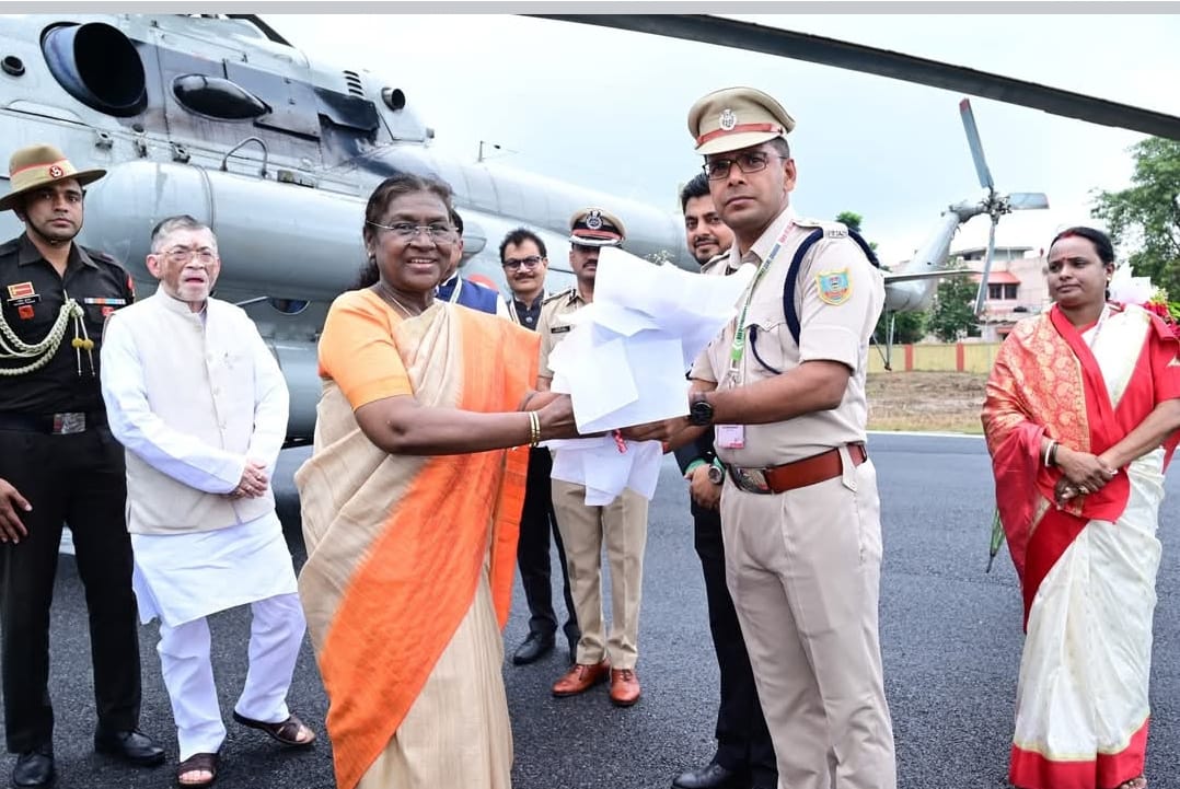 माननीय राष्ट्रपति को डीसी एवं एसएसपी महोदय ने पुष्पगुच्छ प्रदान कर किया स्वागत