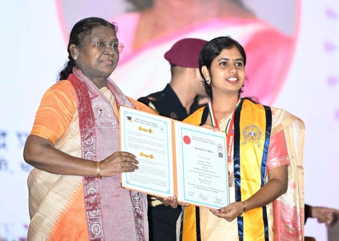 माननीय राष्ट्रपति ने यहां निर्मित हस्तशिल्प वस्तुओं को देखा और इसकी सराहना की। तत्पश्चात माननीय राष्ट्रपति एकेडमिक प्रोसेशन में शामिल होकर मुख्य समारोह स्थल में प्रवेश कर मंच पर पहुंची।