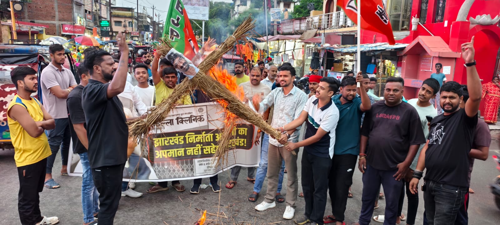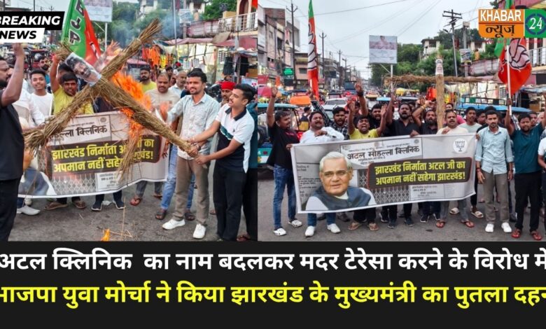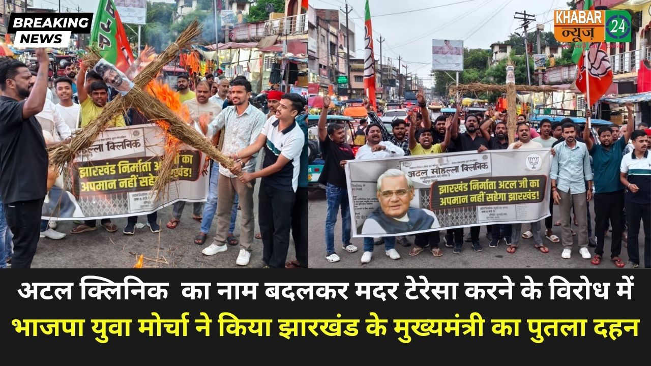 अटल क्लिनिक का नाम बदलकर मदर टेरेसा करने के विरोध में भाजपा युवा मोर्चा ने किया झारखंड के मुख्यमंत्री का पुतला दहन