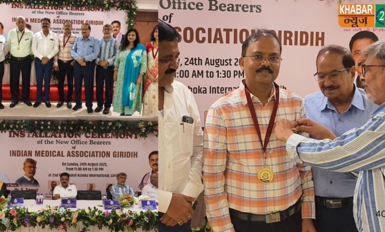 गिरिडीह : गांधी चौक स्थित होटल अशोका इंटरनेशनल में आज आईएमए (इंडियन मेडिकल एसोसिएशन) के द्वारा पदस्थापन समारोह का आयोजन किया गया। इस कार्यक्रम में मुख्य अतिथि के रूप में झारखंड सरकार के मंत्री सुदिव्य कुमार सोनू आईएमए स्टेट अध्यक्ष डॉ एके सिंह, डायरेक्टर इन चीफ डॉक्टर सिद्धार्थ सान्याल, डॉ राम सागर शामिल हुए।