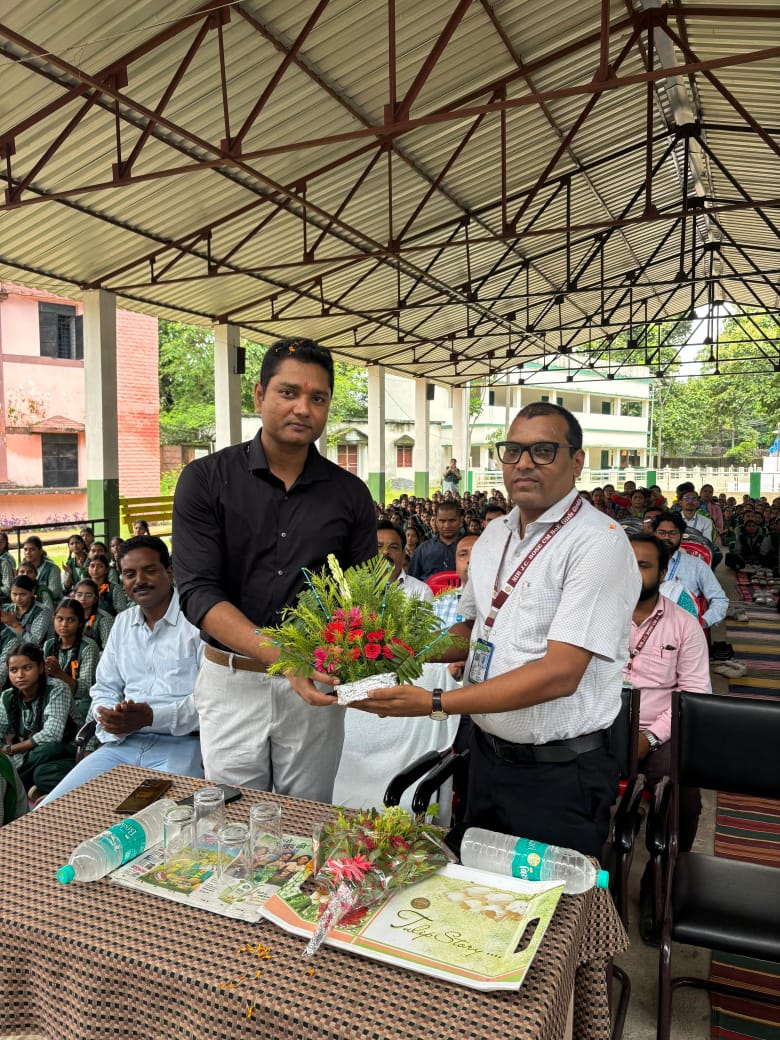 सबसे पहले अतिथियों का स्वागत पुष्प वर्षा के साथ बाल संसद के प्रधानमंत्री और विद्यालय की हेड गर्ल ने अपने स्कॉट टीम के साथ शिक्षक पार्थ सारथी और पुलेज मरांडी प्राचार्य मुन्ना प्रसाद कुशवाहा की अगुवाई में किया ,तत्पश्चात प्राचार्य ने मुख्य अतिथि को बुके देखकर स्वागत किया और उप प्राचार्य पपिया सरकार ने एसएमसी अध्यक्ष और वार्ड पार्षद प्रतिनिधि रणजीत यादव को बुके देकर सम्मानित किया।