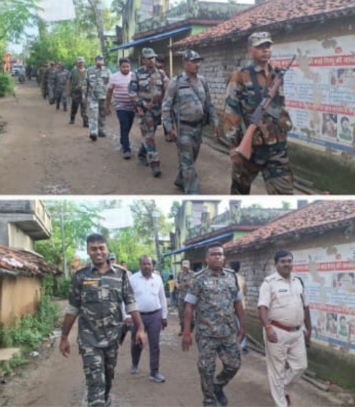 ईद मिलादुन्नबी मद्देनजर गुरुवार शाम को मुसाबनी डीएसपी संदीप भगत के नेतृत्व में एवं भारी संख्या में पुलिस बल के साथ हल्दीपोखर मुस्लिम बस्ती, गंगाडीह, भेलाईडीह मे फ्लेग मार्च निकाला गया।