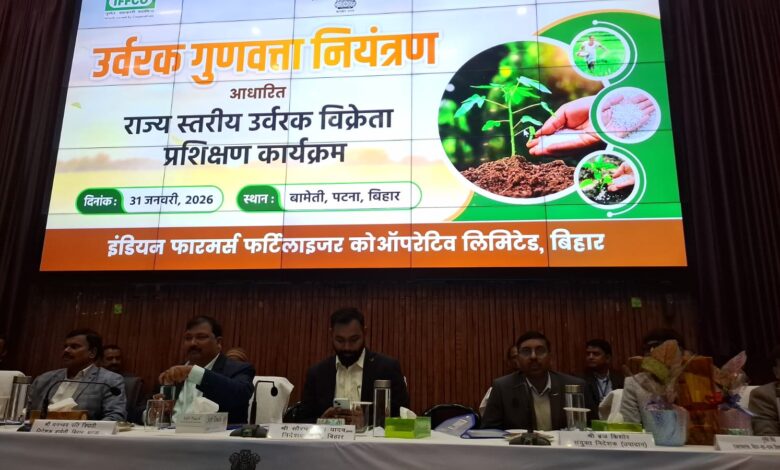 पटना : कृषि विभाग, बिहार के मार्गदर्शन में केन्द्रीय उर्वरक गुणवत्ता नियंत्रण एवं प्रशिक्षण संस्थान, फरीदाबाद (हरियाणा) तथा इफको के संयुक्त तत्वावधान में आज दिनांक 31 जनवरी 2026 को बिहार कृषि प्रबंधन एवं विस्तार प्रशिक्षण संस्थान (बामेती), पटना में बिहार राज्य के उर्वरक विक्रेताओं हेतु एक दिवसीय उर्वरक गुणवत्ता नियंत्रण आधारित प्रशिक्षण कार्यक्रम का आयोजन किया गया। कृषि निदेशक, बिहार श्री सौरभ सुमन यादव द्वारा कार्यक्रम का विधिवत शुभारंभ किया गया।
