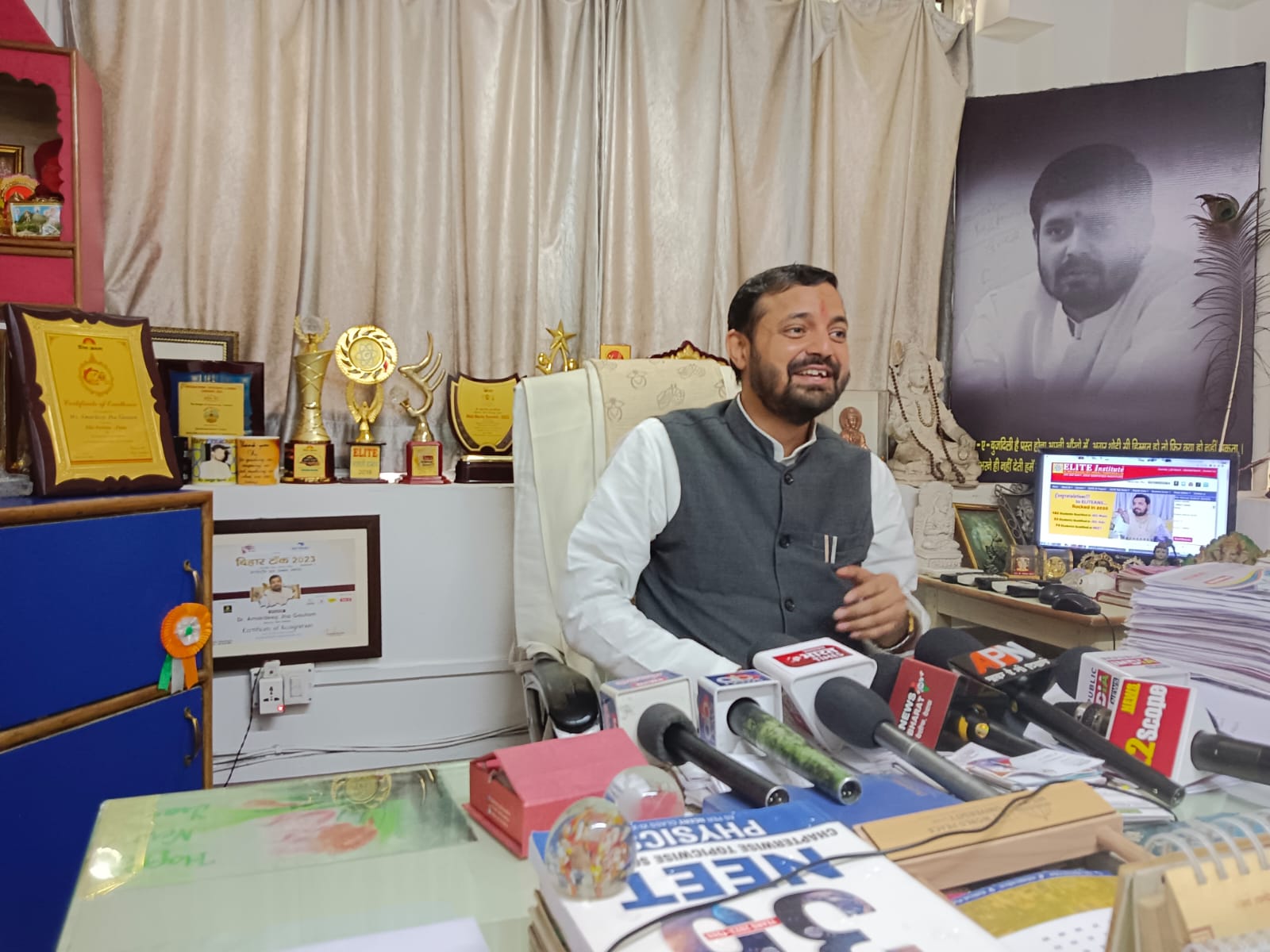 पत्रकारों को संबोधित करते हुये एलिट इंस्टिट्यूट के संस्थापक-निदेशक अमरदीप झा गौतम ने बताया कि एलिट की ज्ञानोदय-योजना के अंतर्गत इस वर्ष जेईई और नीट की परीक्षाओं में सम्मिलित होने वाले छात्र-छात्राओं के अलावे सीबीएसई-बोर्ड के बारहवीं के छात्रों के लिये एक महीने का फ्री-एडुकेशन मुहैया करवाया जा रहा है, जिसमें कोई भी छात्र-छात्रा किसी भी चैप्टर को पढ़ सकते हैं, अपने किसी भी डाऊट को क्लीयर कर सकते हैं l