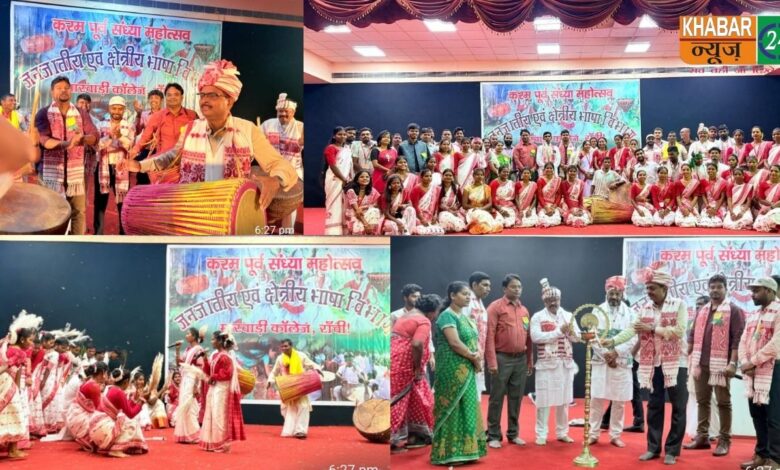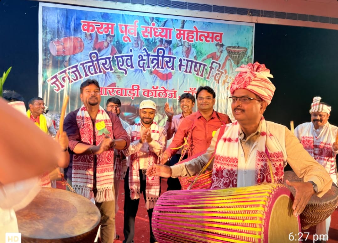 राँची : आज मारवाड़ी महाविद्यालय, राँची में जनजातीय एवं क्षेत्रीय भाषा विभाग द्वारा “करम पूर्व संध्या महोत्सव” अत्यंत ही हर्षोल्लास एवं धूमधाम के साथ मनाया गया। इस महोत्सव में विभाग के अन्तर्गत सभी भाषाओं के छात्र-छात्राओं ने अपनी-अपनी पारंपरिक नृत्य प्रस्तुतियां दीं । कार्यक्रम में मुख्य अतिथि के रूप में उपस्थित मारवाड़ी महाविद्यालय के प्राचार्य डॉ. मनोज कुमार ने कहा कि करमा पर्व झारखण्ड की सांस्कृतिक अस्मिता का जीवंत प्रतीक है।