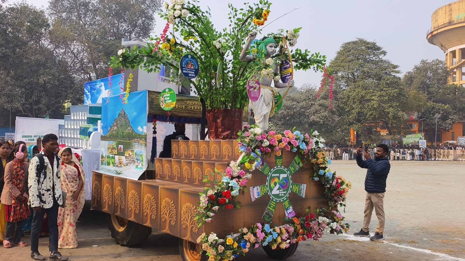 इनमें बाल विवाह जैसे गंभीर सामाजिक विषय पर आधारित झांकी को विशेष सराहना मिली। कार्यक्रम के अंत में मंत्री सुदिव्य कुमार सोनू, उपायुक्त रामनिवास यादव, एसपी डॉ. बिमल कुमार सहित सभी वरीय पदाधिकारियों ने एक साथ तिरंगा नुमा तीन रंगों के गुब्बारे आकाश की ओर छोड़े।
