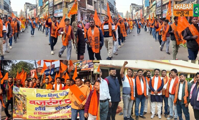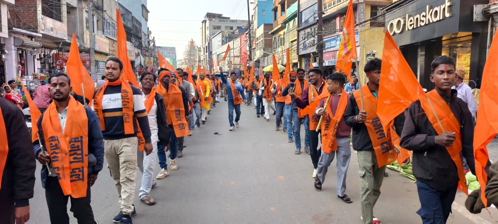 गीता जयंती के अवसर पर बजरंग दल के द्वारा गिरिडीह में निकाला गया शोर्य संचालन