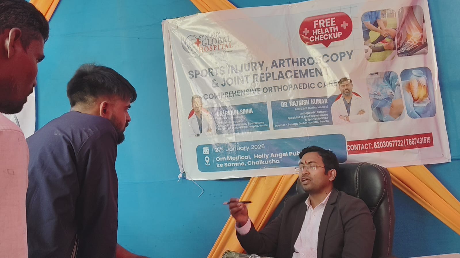 शिविर में रांची सिनर्जी ग्लोबल हॉस्पिटल के हड्डी रोग विशेषज्ञ डॉक्टर राहुल सिन्हा और डॉ रजनीश कुमार ने हड्डी एवं शरीर के विभिन्न प्रकार की बीमारियों का जांच किया । और लोगों को दवाइयां दी शिविर में डॉक्टर राहुल सिन्हा ने बताया की वे जगह जगह पर शिविर लगाते हैं और विभिन्न बीमारियों का इलाज मुफ्त में करते हैं |