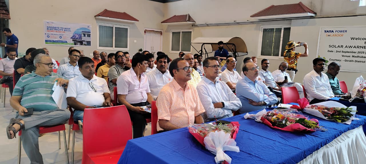 गिरिडीह : जिला चैंबर ऑफ़ कॉमर्स के तत्वाधान में आज टाटा पावर द्वारा सौर ऊर्जा पर एक जागरूकता कार्यक्रम का आयोजन किया गया।
