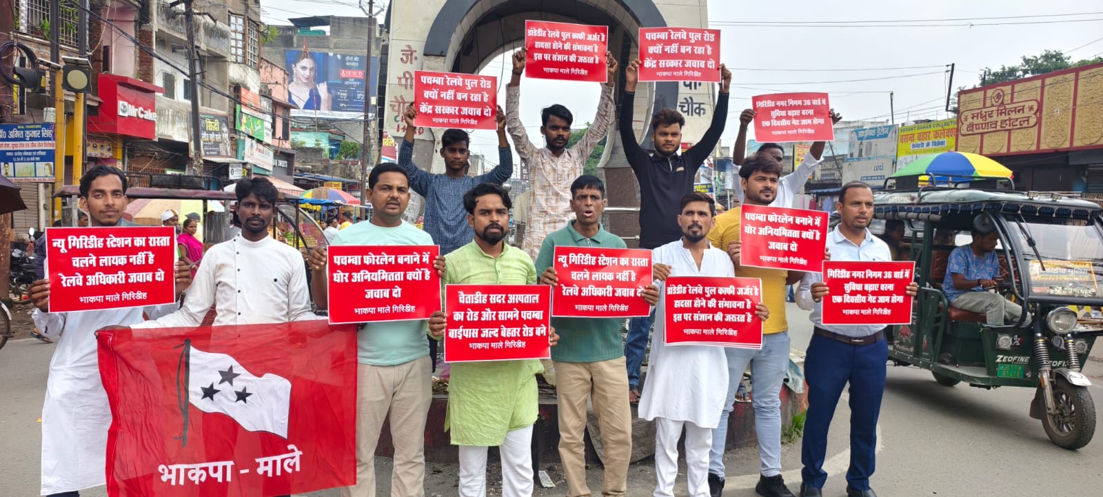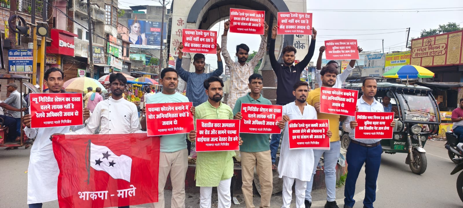 गिरिडीह : जिला अंतर्गत पचम्बा फोर लेन, पचम्बा रेलवे पुल रोड, न्यू गिरिडीह रेलवे स्टेशन रोड, डांडीडीह रेलवे पुल, दुखिया महादेव रोड, चैताडीह सदर अस्पताल मेन गेट के सामने पचम्बा बाईपास रोड* सहित कई प्रमुख सड़कों की जर्जर स्थिति और निर्माण कार्यों में हो रही देरी को लेकर भाकपा (माले) की टीम ने जेपी चौक में किया जोरदार विरोध प्रदर्शन