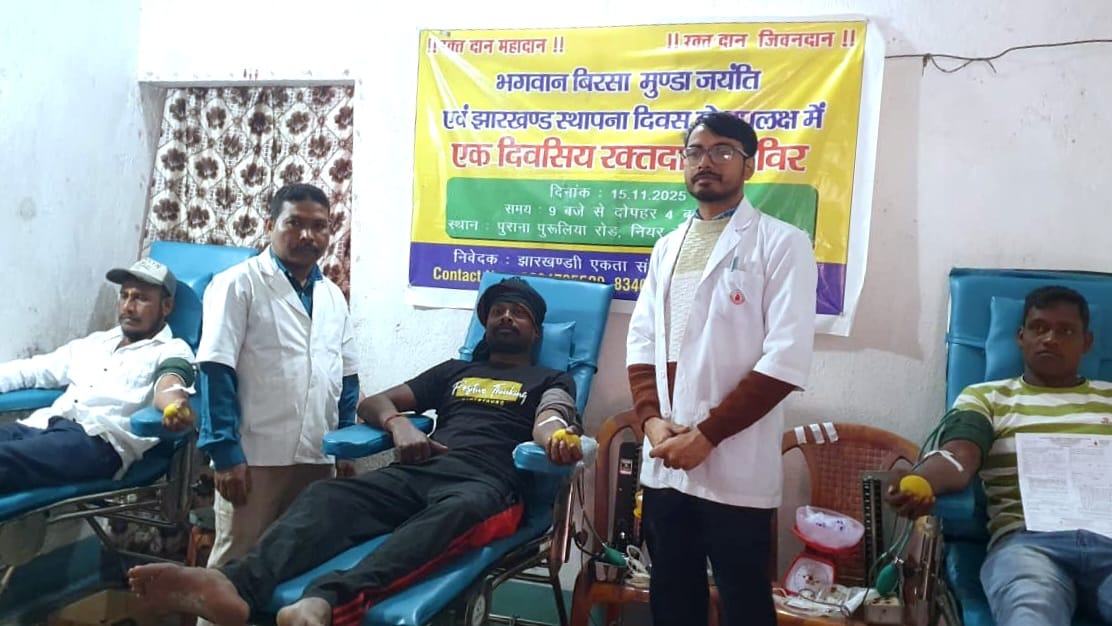 जहां एक तरफ वीर भगवान विरसा मुंडा की धरती, भगवान विरसा मुंडा के जयंती पर, झारखंड राज्य के 25 बें स्थापना दिवस यानी सिल्वर जुबली वर्ष मना रहा. वहीं मानगो के झारखंडी एकता संघर्ष समिति ने लगाया एक दिवसीय स्वैच्छिक रक्तदान शिविर।