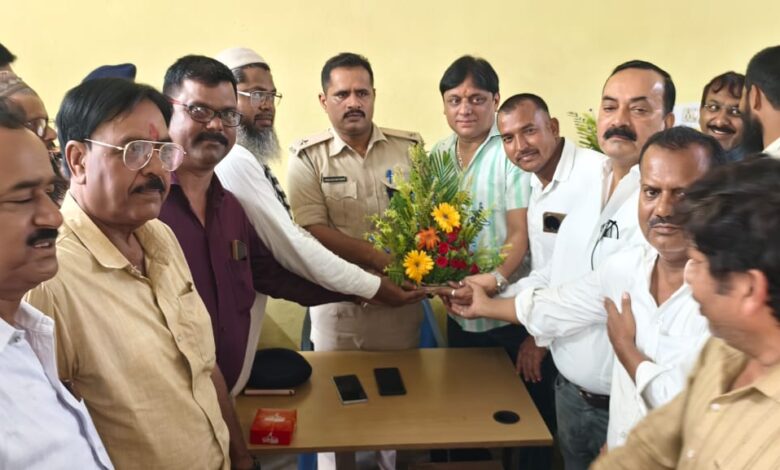 नगर थाना प्रभारी के रूप में ज्ञान रंजन कुमार ने अपना पदभार संभाल शांति समिति के सदस्यों ने बुक्के देकर किया उनका स्वागत