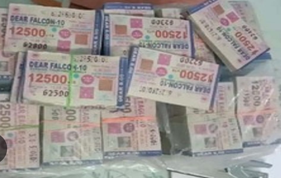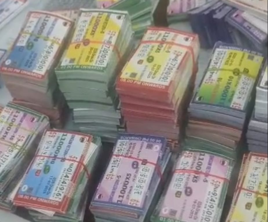 भारी मात्रा में अवैध लॉटरी टिकट जब्त।