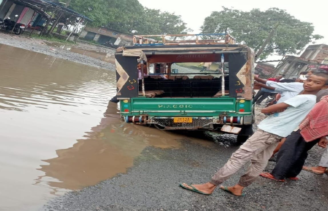 पारडीह मोड़ की जर्जर सड़क बनी परेशानी, वाहन फंसने से जाम की स्थिति, लोगों में आक्रोश