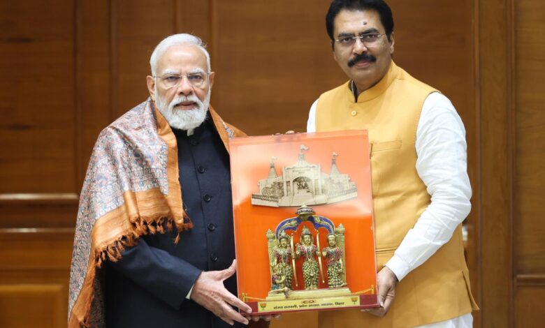 प्रधानमंत्री नरेंद्र मोदी से मिले बिहार भाजपा अध्यक्ष संजय सरावगी, ‘पुनौरा धाम’ की तस्वीर वाला मोमेंटो दिया उपहार