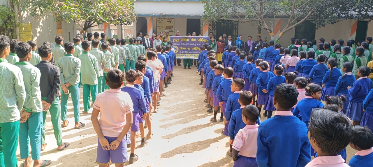 डालसा सचिव धर्मेंद्र कुमार के निर्देश पर पी एल वी उत्क्रमित मध्य विद्यालय चांदपुर पहुंचकर स्कूली बच्चों के साथ संविधान दिवस मनाया।