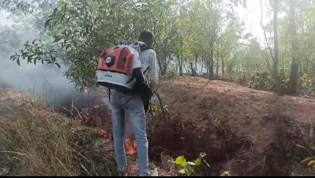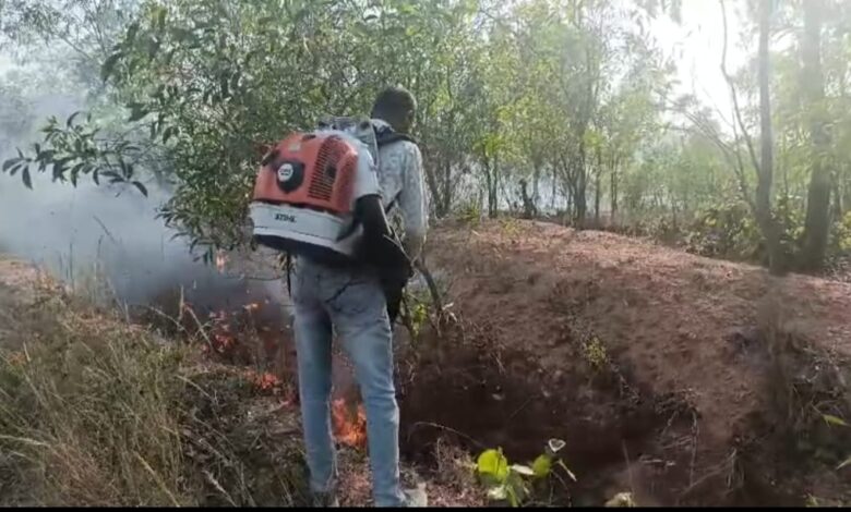 हजारीबाग/चलकुशा. प्रखंड के मसकेडीह के जंगल में दिन के 11 बजे के करीब आग लग गई देखते ही देखते आग भीषण रूप में बदल गया. आग की सुचना मिलते ही दुमदुमा बीट के वनरक्षी मनोरंजन कुमार, प्रभारी वनपाल संटु कुमार मौके पर पहुंच कर दो मशीनों से आग बुझाने लगे. तेज हवा चलने के कारण आग बुझाने में परेशानियों का सामना करना पड़ा. 4-5 घंटे के अथक प्रयास के बाद शाम 6 बजे आग पर काबू पाया जा सका.