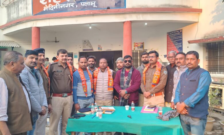 मेदिनीनगर में राष्ट्रीय परशुराम सेना भार्गव के पदाधिकारियों के साथ शहर थाना परिसर में डीएसपी राजीव रंजन की अध्यक्षता में एक महत्वपूर्ण बैठक आयोजित