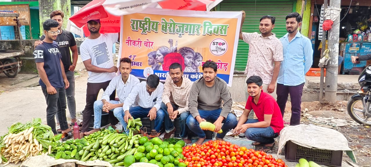 युवा कांग्रेस के द्वारा प्रधानमंत्री नरेंद्र मोदी के जन्मदिवस को बेरोजगार दिवस के रूप में शहर में सब्जी बेचकर मनाया