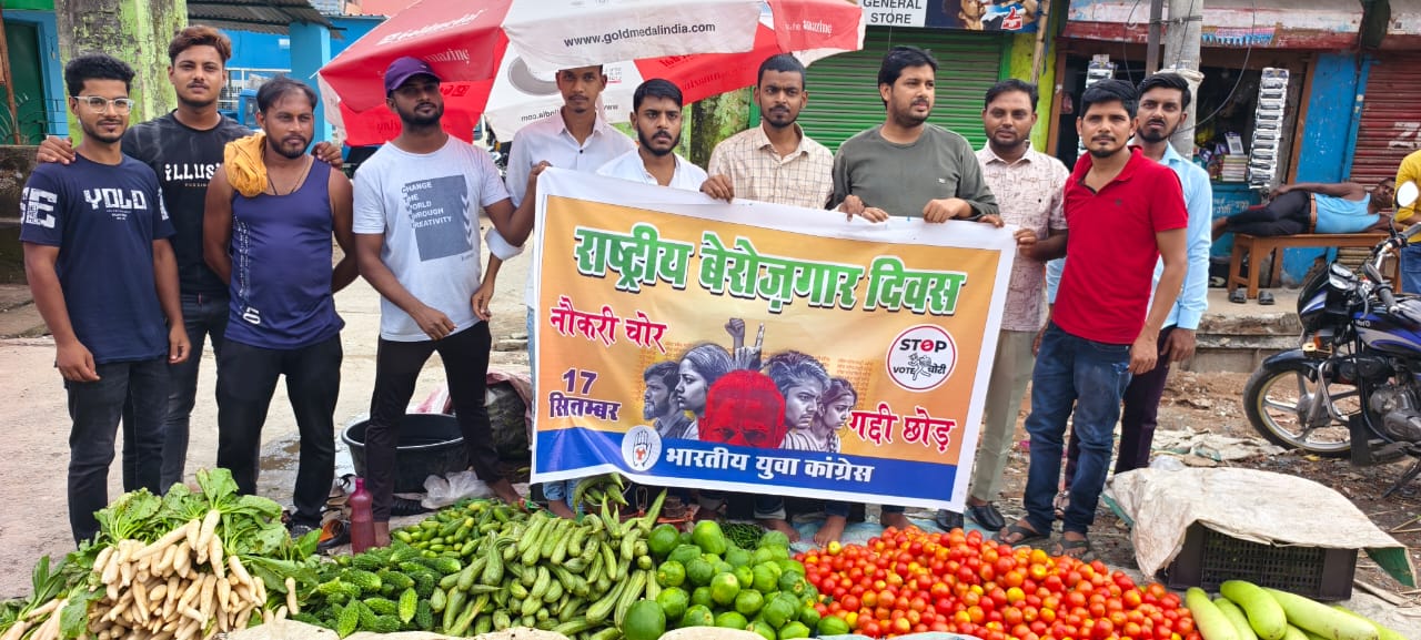 बताया गया कि देश में बढ़ती बेरोजगारी को देखते हुए भारतीय युवा कांग्रेस पूरे देश में प्रधानमंत्री नरेंद्र मोदी का जन्मदिन आज बेरोजगार दिवस के रूप में मना रही है। इस बाबत युवा कांग्रेस के कार्यकारी जिला अध्यक्ष यश सिन्हा और अन्य युवा कांग्रेसियों ने कहा कि वर्ष 2014 में जब नरेंद्र मोदी प्रधानमंत्री बने उस समय से युवाओं को ठगने का काम भाजपा सरकार के द्वारा किया गया है। कहां की वर्ष 2014 के पहले कांग्रेस की सरकार में युवाओं को रोजगार और सम्मान मिला है।