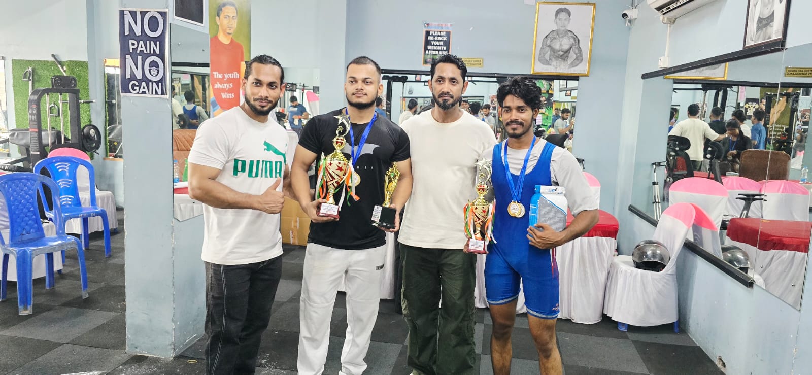 मौके पर देवी प्रसाद चटर्जी..सुचेता चटर्जी.. पाटली विश्वकर्मा..MD नौमान कलीम..md वाशिम..Md नाजिर..MD हैदर इनके अलावा सैकड़ों प्रतिभागी सह जिम के सहयोगूजुद रहे