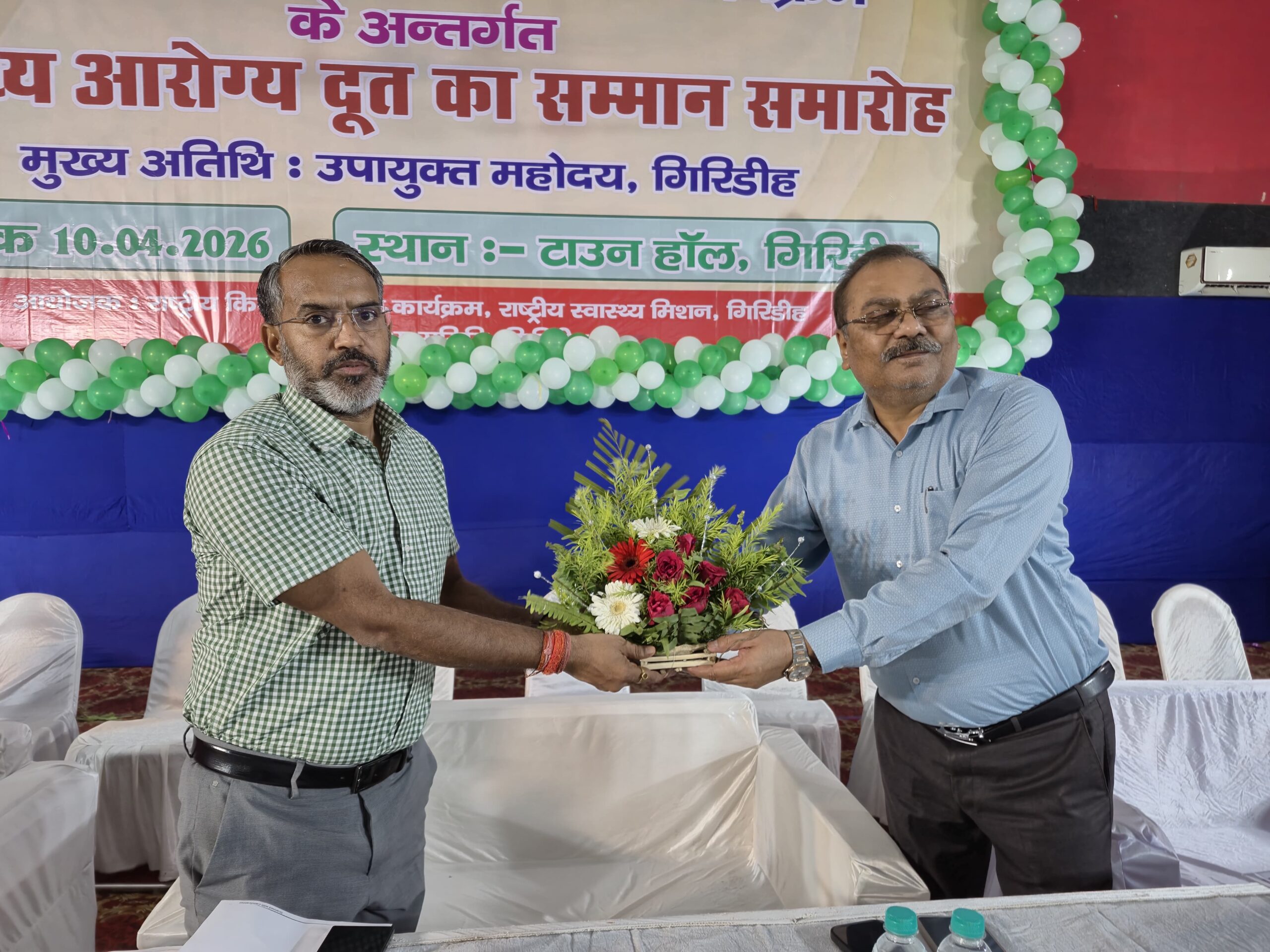 गिरिडीह के नगर भवन में विद्यालय स्वास्थ्य एवं कल्याण कार्यक्रम के अंतर्गत स्वास्थ्य आरोग्य दूत सम्मान समारोह का भव्य आयोजन किया गया।