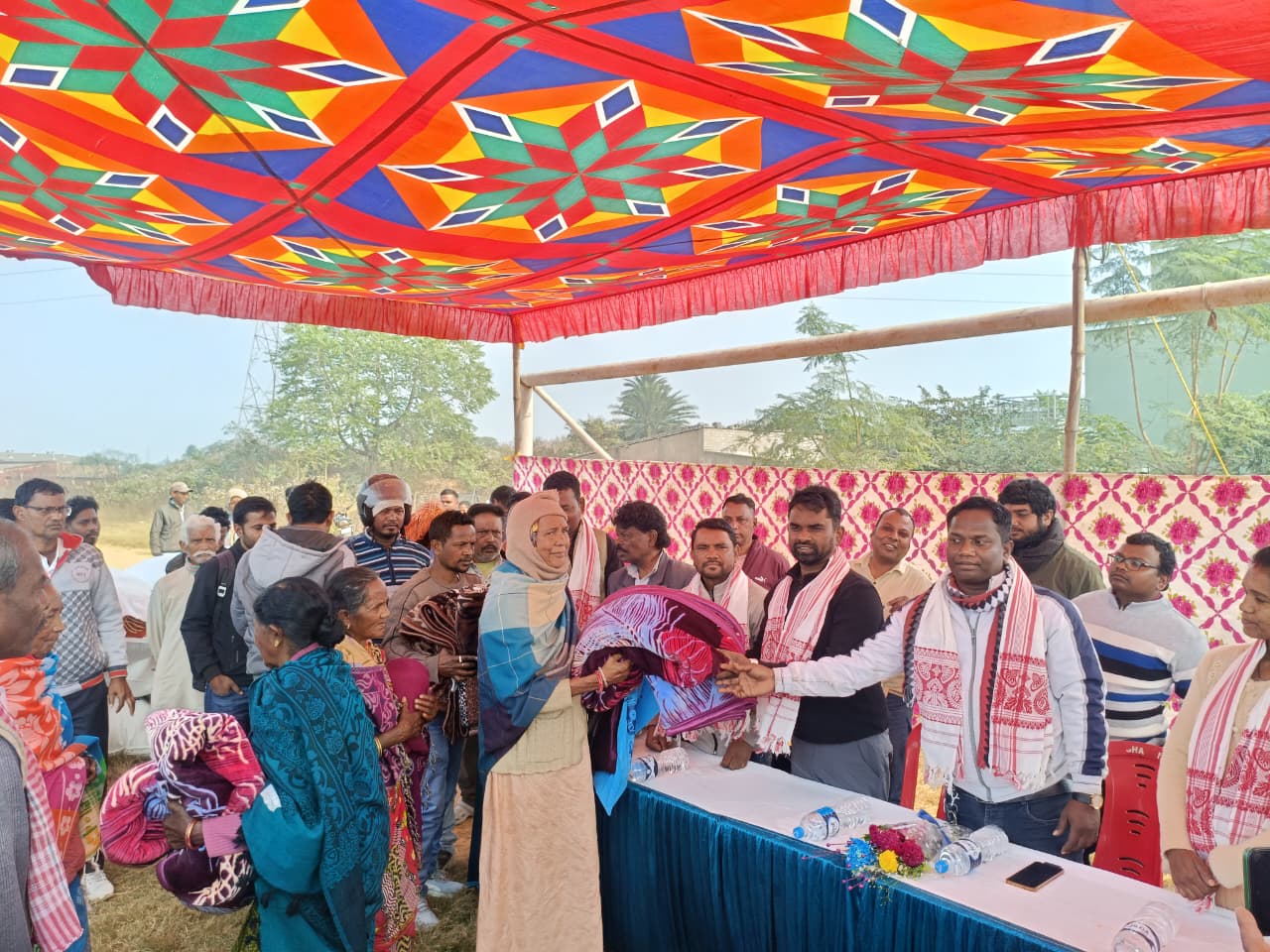 विधायक संजीव सरदार तीन पंचायतों के 225 लोगों के बीच कंबल वितरण किया।