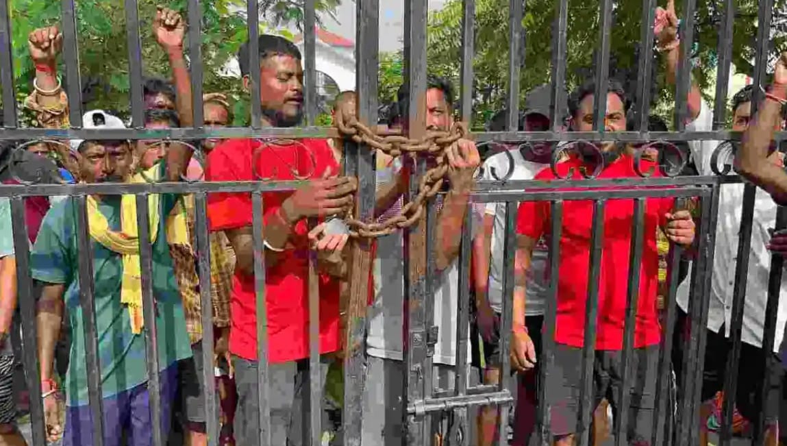 गिरिडीह : दुर्गा पूजा के चार दिन बीत जाने के बाद भी नगर निगम के सफाई कर्मचारियों को वेतन नहीं मिलने से नाराजगी शुक्रवार को चरम पर पहुँच गई। आक्रोशित सफाई कर्मी बड़ी संख्या में नगर निगम कार्यालय पहुँचे और जोरदार प्रदर्शन किया। गुस्साए कर्मचारियों ने निगम कार्यालय के मुख्य गेट पर ताला जड़कर कार्य बहिष्कार की घोषणा कर दी।