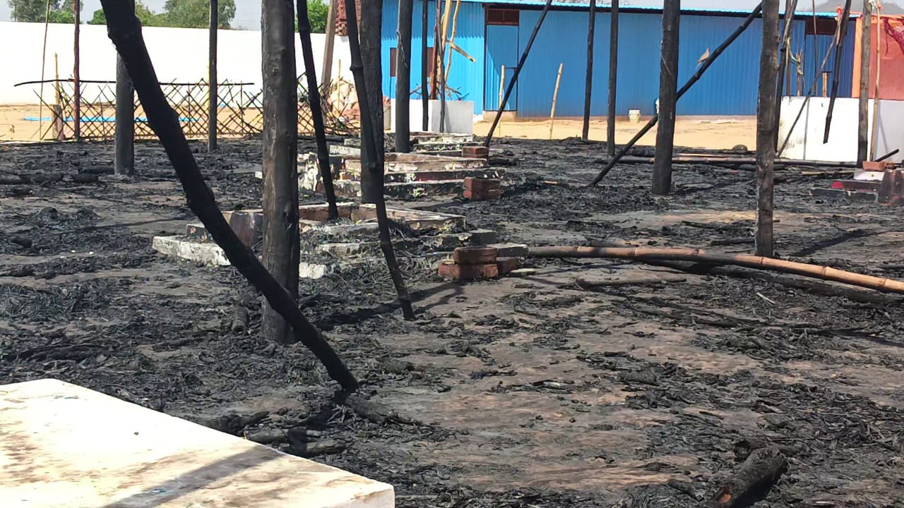 श्री आद्य शंकराचार्य आश्रम में पूर्वाम्नाय पुरी पीठाधीश्वर जगद्गुरु शंकराचार्य स्वामी श्री अधोक्षजानन्द जी महाराज के निर्माण अधीन आश्रम में बिजली के हाई वोल्टेज तारों में चिंगारियां उठने की वजह से यज्ञशाला स्थल जलकर राख हो गया।