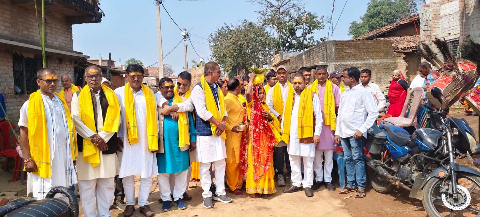 मुखिया सुखदेव यादव के द्वारा सभी अतिथियों को अंग वस्त्र देकर सम्मानित किया गया। यह गृह प्रवेश तीन दिवसीय धार्मिक अनुष्ठान के रूप में किया जा रहा है। इस अवसर पर कन्याएं के सर पर कलश रखकर पारंपरिक वेशभूषा में गाजे-बाजे एवं जयकारों के साथ कलश यात्रा निकाली गई।