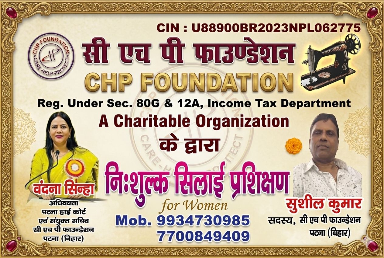 सी एच पी फाउंडेशन (CIN: U88900BR2023NPL062775) आयकर विभाग के सेक्शन 80G और 12A के तहत निबंधित एक चैरिटेबल संस्था है, जो लगातार समाज कल्याण और विशेषकर महिला उत्थान के कार्यों में सक्रिय है।