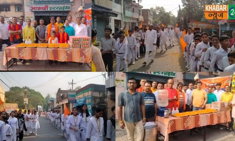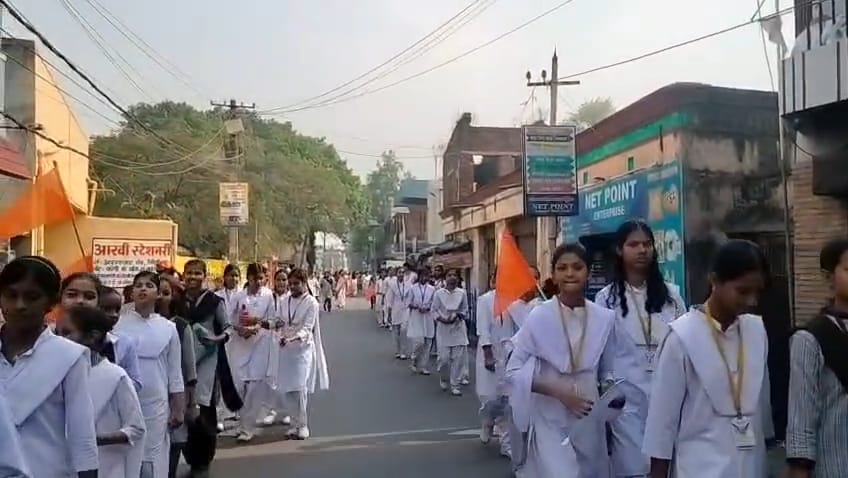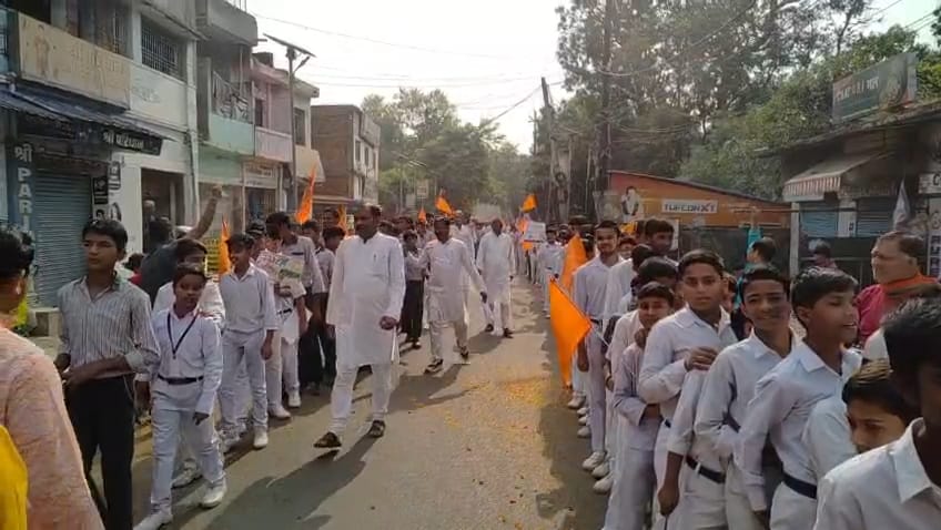 इसी क्रम में सरस्वती शिशु विद्या मंदिर, बरगंडा से भव्य प्रभात फेरी निकाली गई। प्रभात फेरी में शामिल बच्चे पारंपरिक वेशभूषा में सनातन धर्म ध्वज लेकर नगर भ्रमण करते नजर आए।