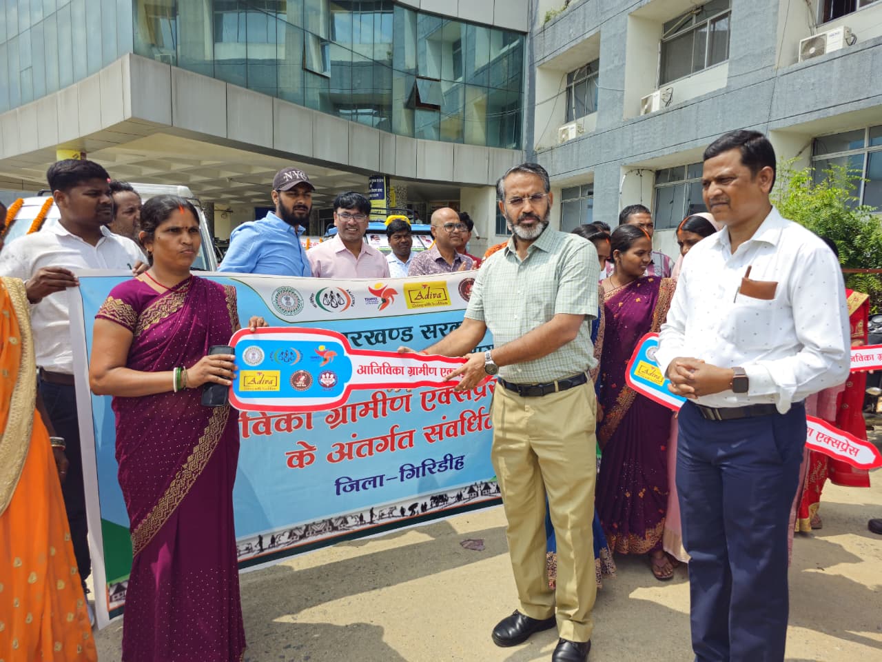 गिरिडीह : उपायुक्त रामनिवास यादव ने आज समाहरणालय परिसर से जेएसएलपीएस के आजीविका ग्रामीण एक्सप्रेस योजना (AGEY) के अंतर्गत सवारी वाहन की चाबी प्रदान कर एवं हरी झंडी दिखाकर वाहन को रवाना किया। इस योजना का उद्देश्य सुदूर क्षेत्र को यातायात सुविधा से जोड़कर सखी मंडल को आजीविका उपलब्ध कराना है।
